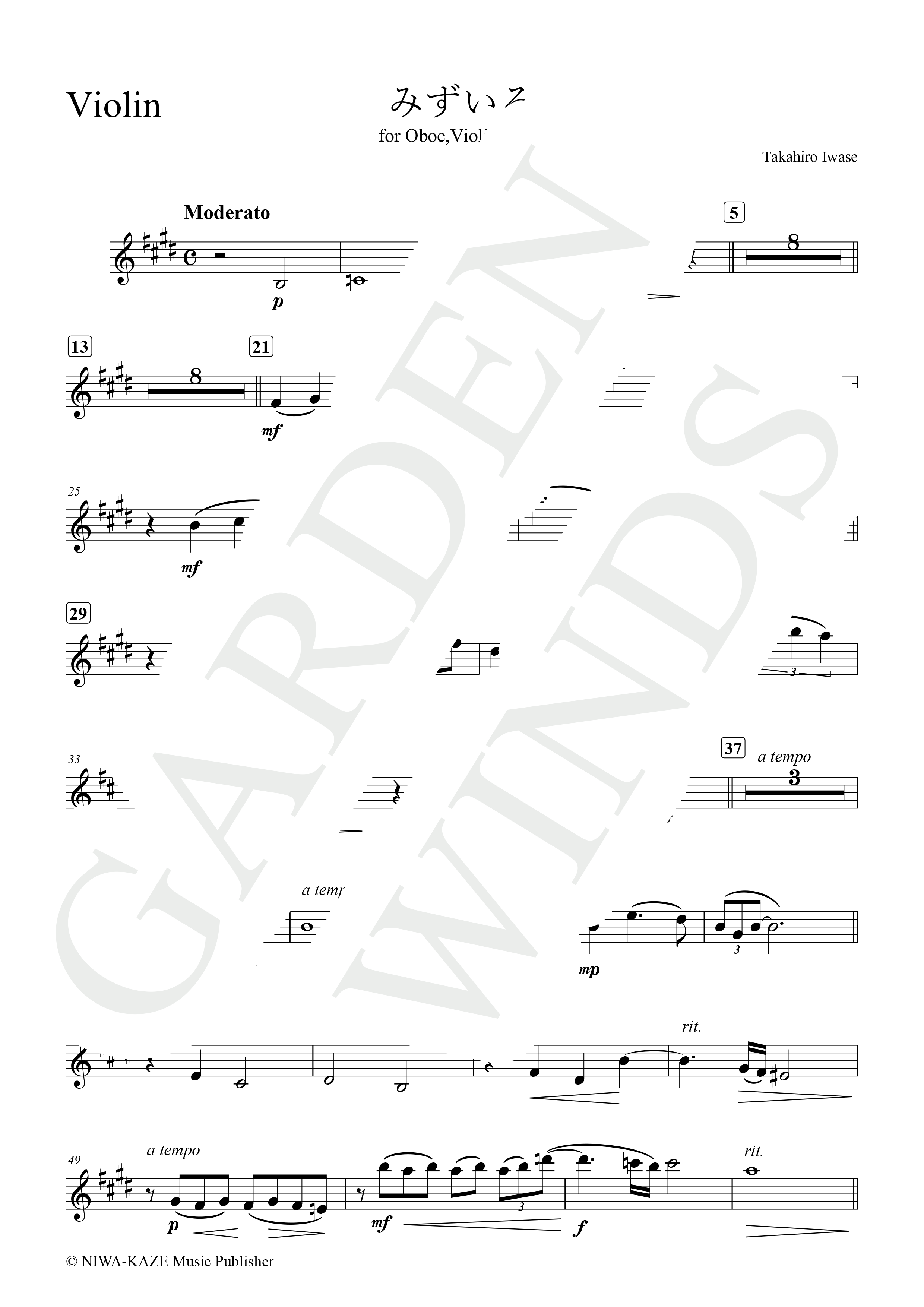 岩瀬貴浩作曲・編曲による「みずいろ<オーボエ、ヴァイオリン、ピアノ ver.>」